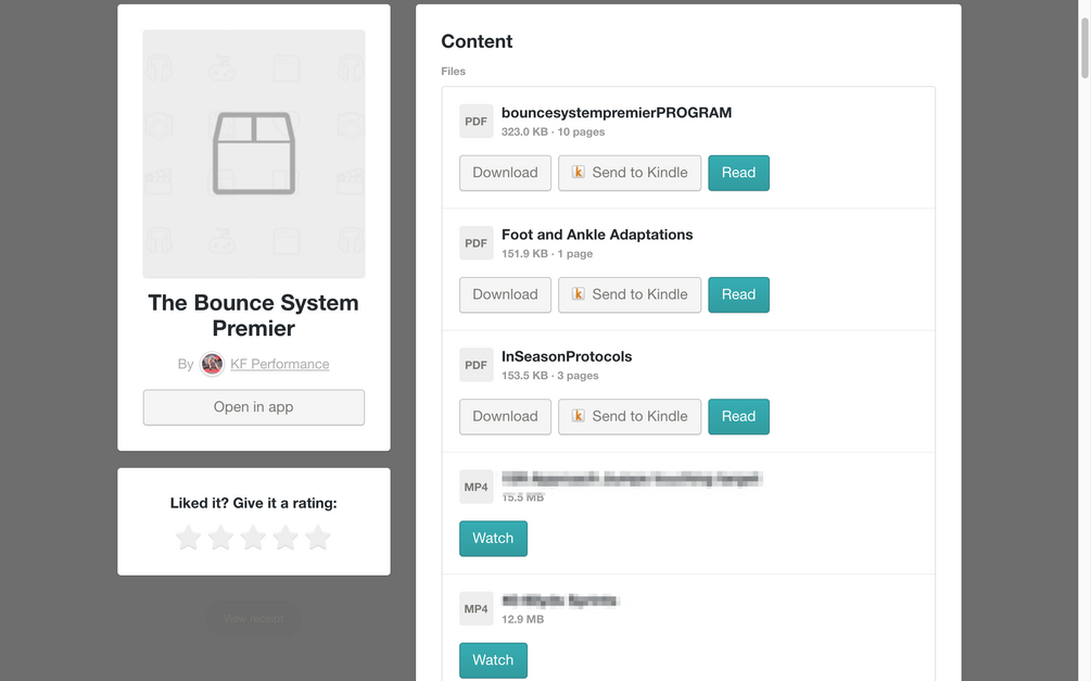 Users are emailed a link to a .pdf file of the entire three-month training program with sets, reps, and week to week progressions PLUS access to 50+ streamable video demonstrations of the entire program